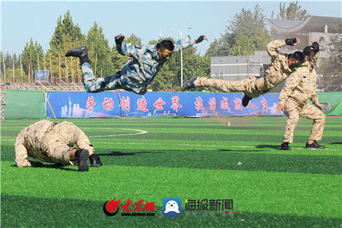 军体拳、战术表演等科目动作干脆利索、行云流水、气势如虹,方寸之间,将集团学子们顽强拼搏、奋勇向前的精神面貌展现得淋漓尽致,赢得了现场观众的阵阵掌声。